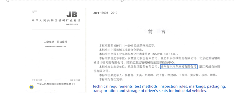 (Tekniske krav, testmetoder, inspeksjonsregler, merking, pakking, transport og lagring av førerseter for industrikjøretøyer.)